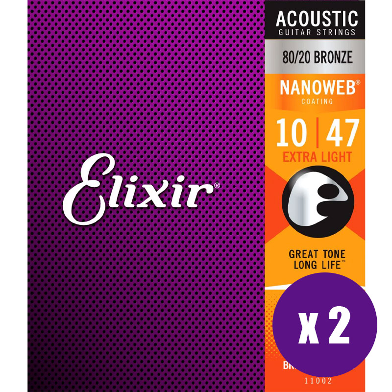 Elixir Nanoweb Acoustic Guitar Strings 13-56 80/20 Bronze x 2 Packs