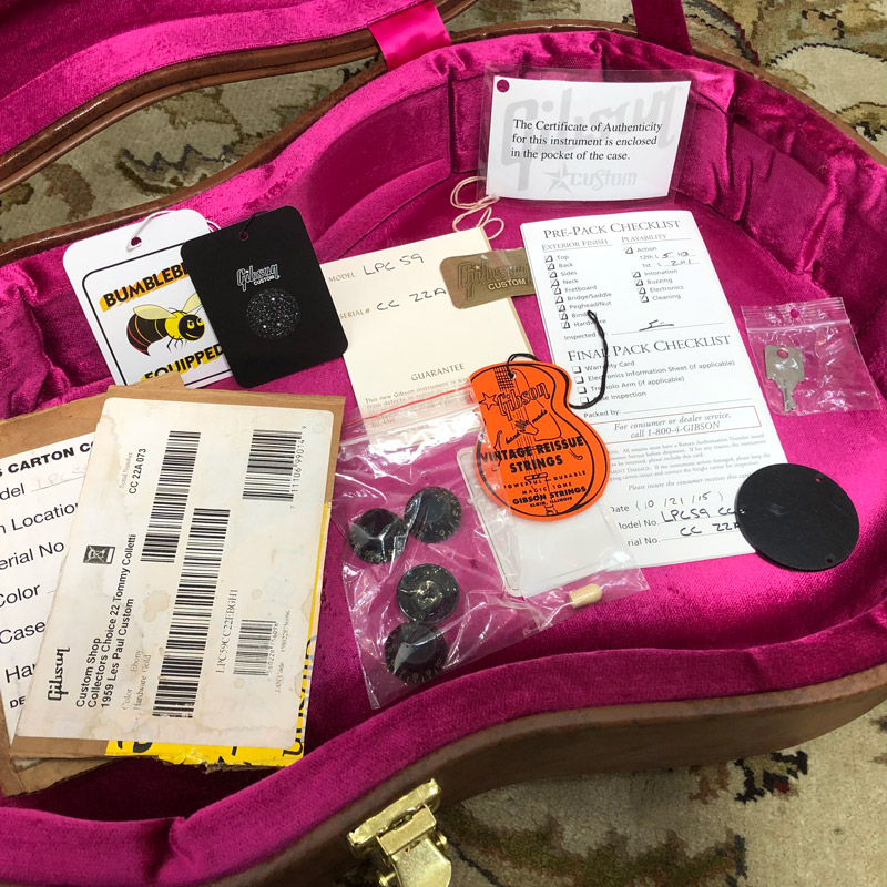 Gibson Custom Shop Collector’s Choice #22A. Tommy Colletti 1959 Les Paul Custom. Hand-aged. Limited-run of up to 300 worldwide.